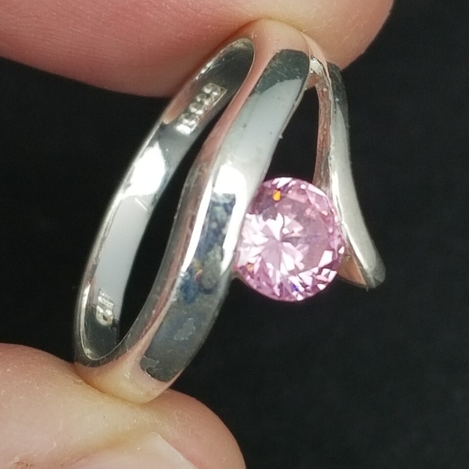 - size 9 sterling silver ring ladies pink sapphire ESTATE SALE nice!