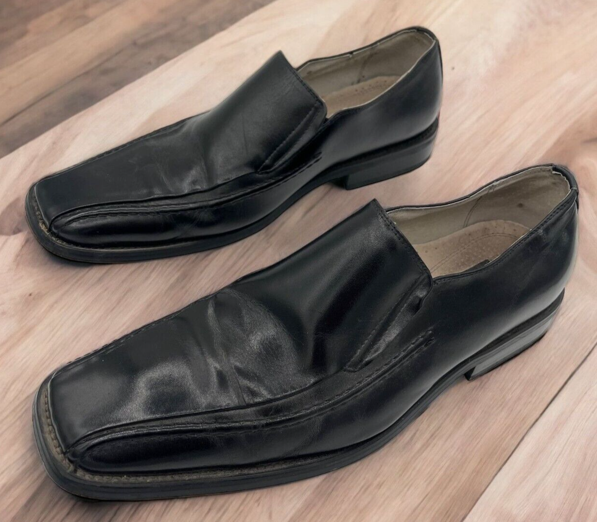 stacy adams hillman black bike toe slip on leather loafer 9M