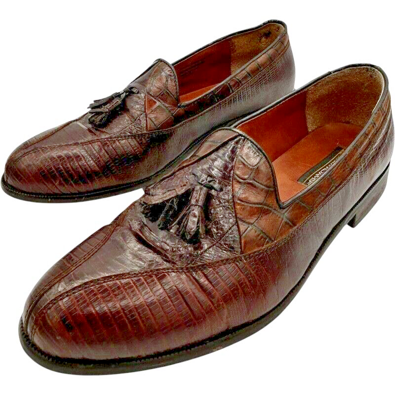 stacy adams men's snake & leather cognac 23021-02 slip-on split-toe size 12M