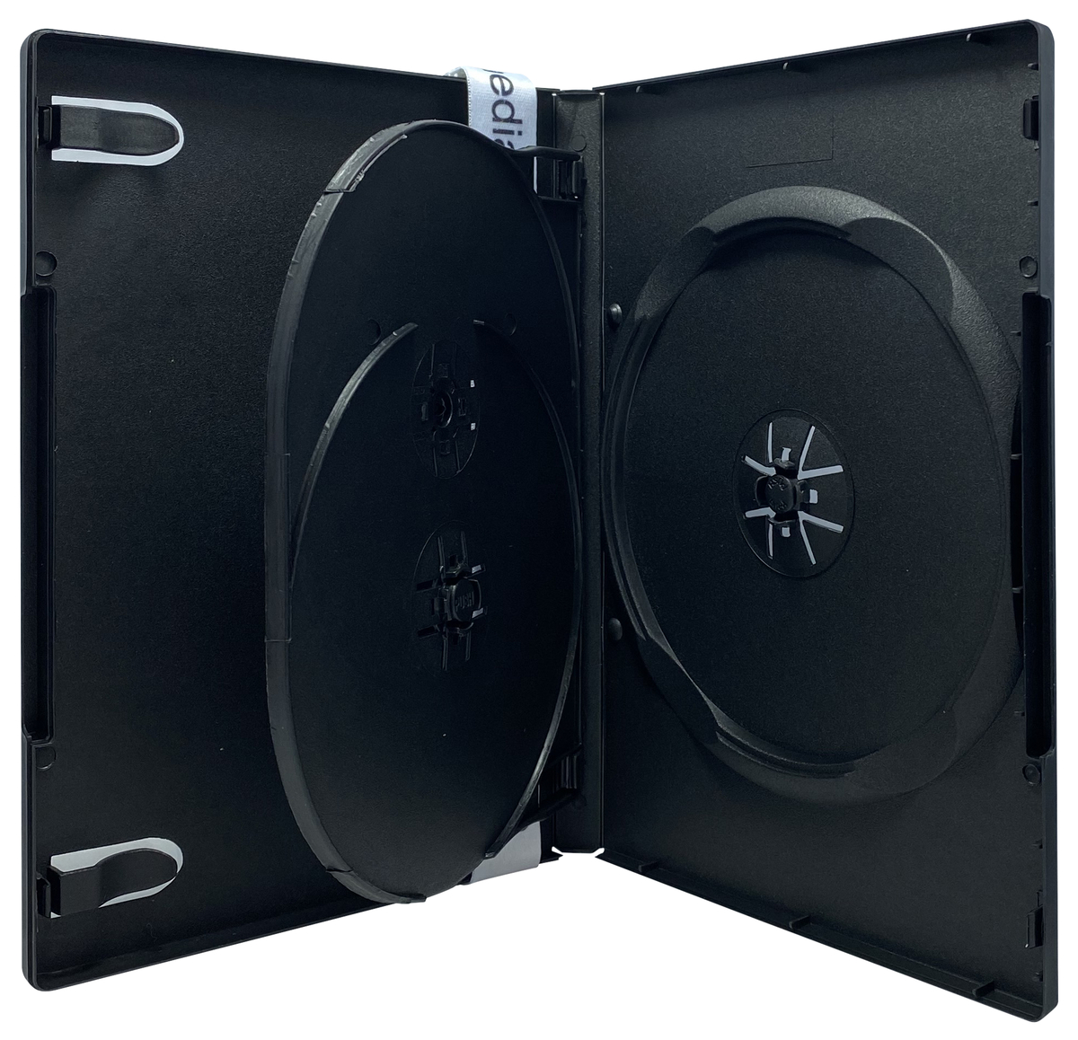 The Triple DVD Case allows you to safely package 3 standard size DVD or CD. This Triple DVD Case product features double clips to hold DVD Case inserts. A push button hub along with an inner flap for easy media removal and a clear acetate outer cover that allows for case wrap insert. Both attractive and durable the Triple DVD Case is a great packaging solution.