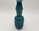 studio PARAN Hand blown Art glass vase aqua color 7.5” Signed Yellow Rim 2002