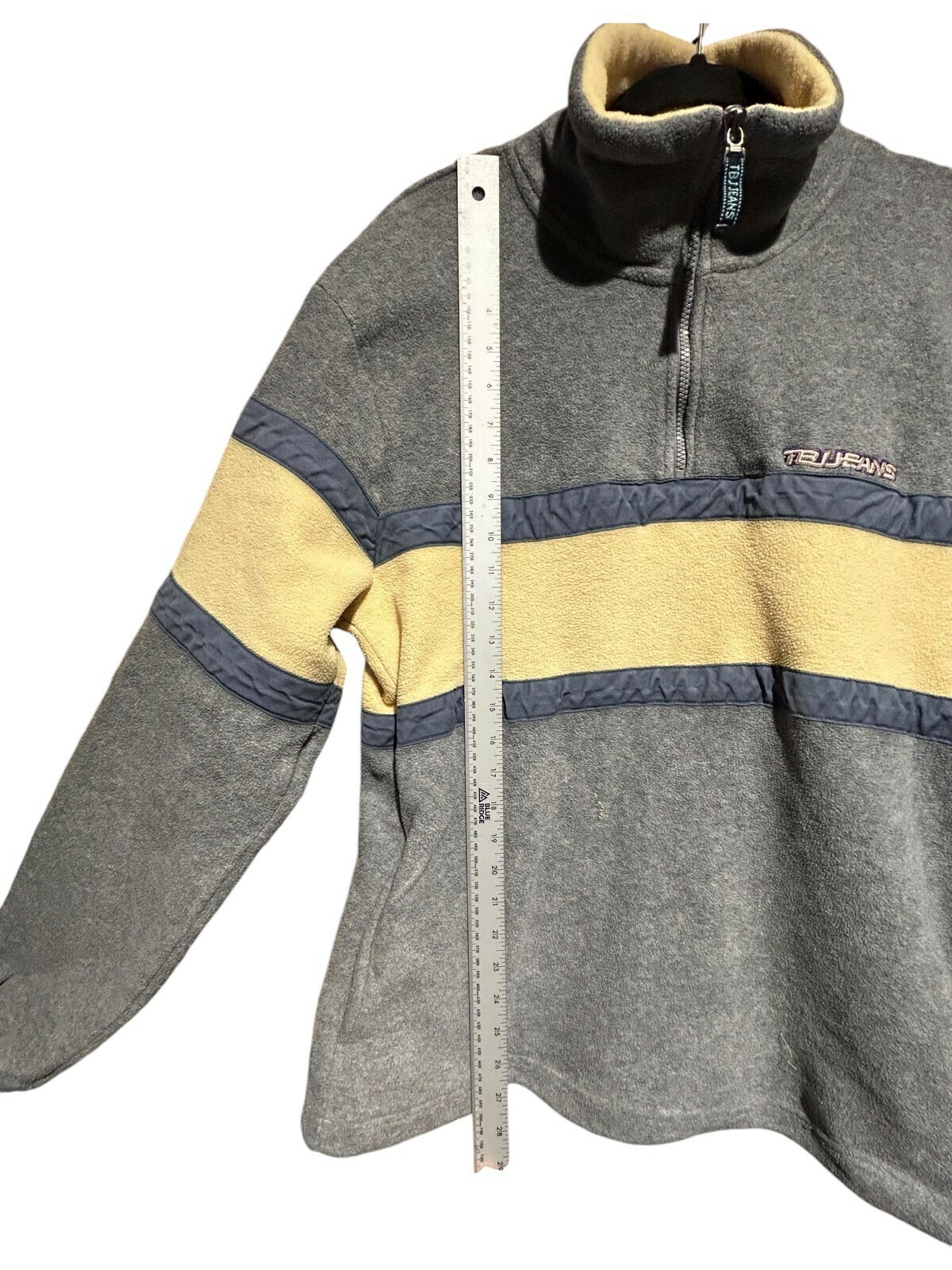tbj jeans co. 1/4 zip fleece pullover jacket steel blue yellow size 100 (Men's M)