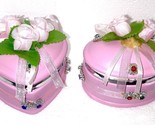 - trinket boxes Heart shaped and oval shaped pink set of 2 flowers and bows