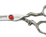 Beautiful design handle. This is an ideal shear for cutting wet or dry, coarse or curly hair. Slice cut, Point cut, It's all a breeze with this hand made tool. Forged in Japan from from Authentic Japanese 440C Steel. SET INCLUDES SHEAR AND CHOICE OF COLOR DRAGON RAZOR WITH LEATHER CASE.