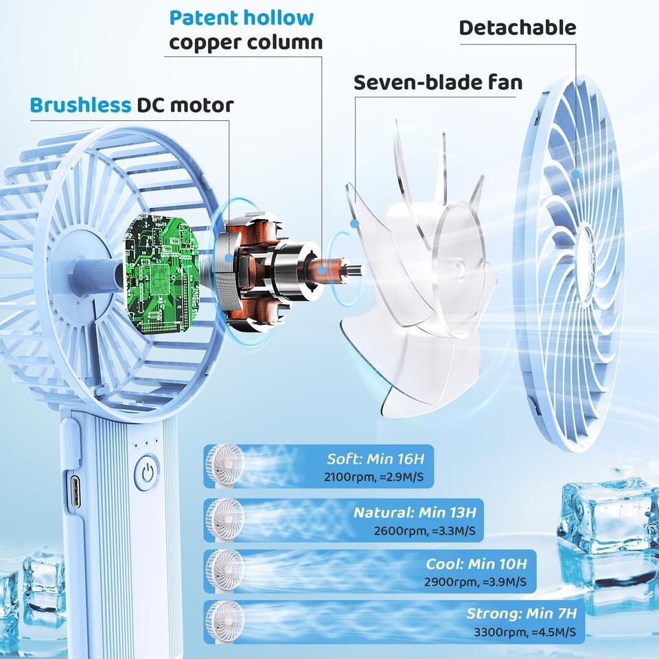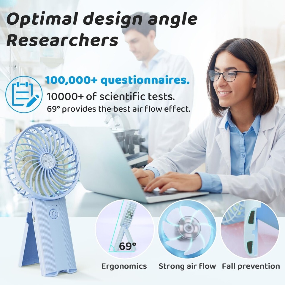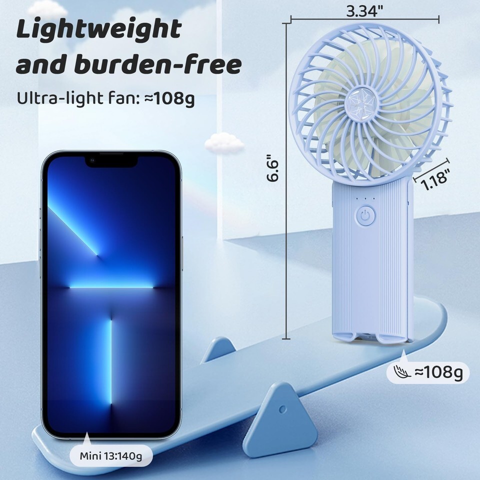 - udodik Portable Handheld Fan Rechargeable 4 Speeds Light Blue