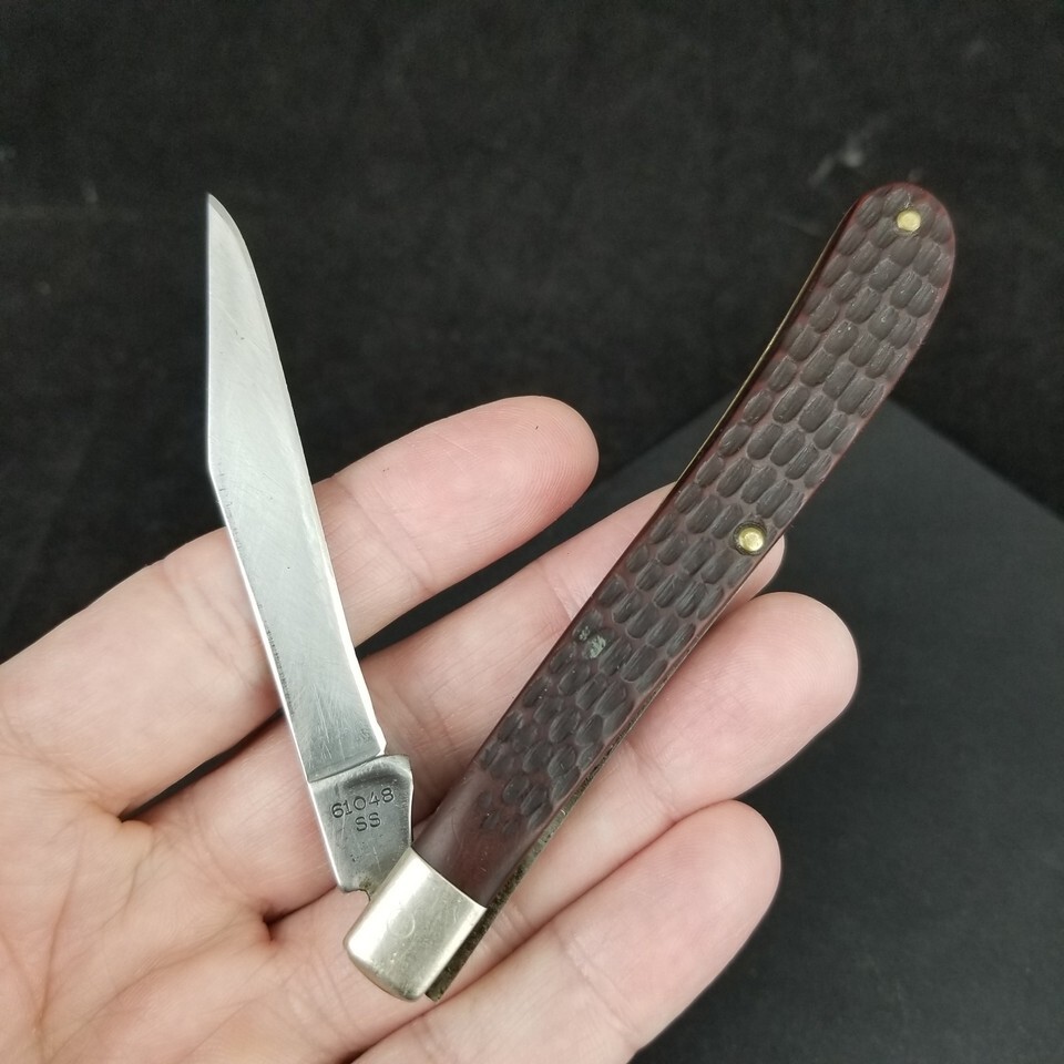 - vintage Case XX pocket knife Slim Trapper 1975 jigged delrin 5 dot