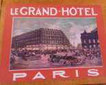 - vintage Luggage Label Le Grand - Hotel, Paris, France w automobiles VG+