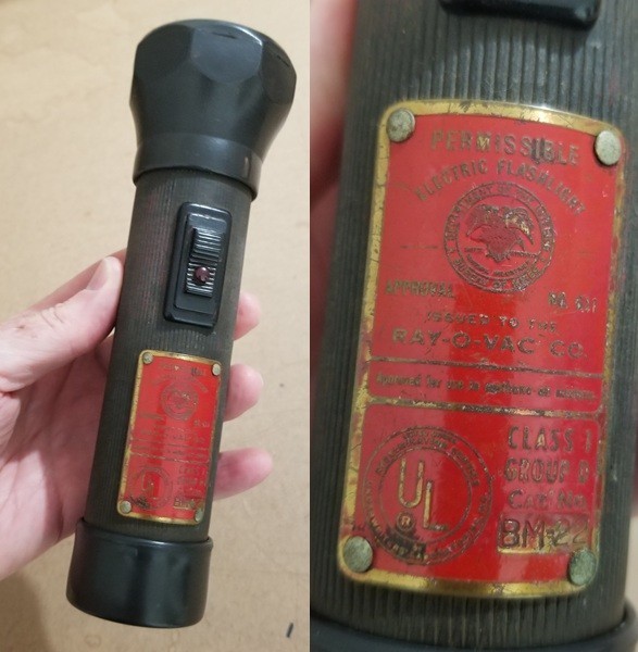 - vintage mining flashlight RAY-O-VAC Permissible Electric Mine Safety No. 611