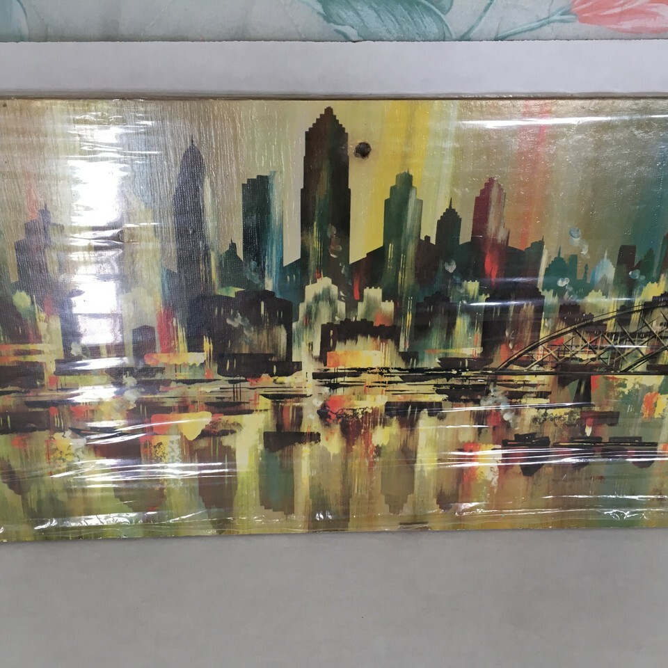 - vintage modern wall plaque art reproduction Stareck city landscape mid century