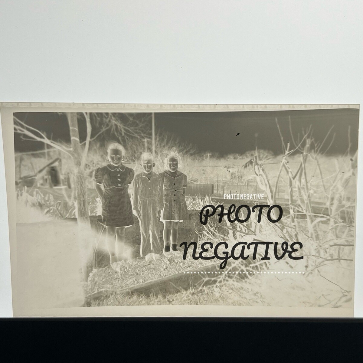 vintage photo negative Group Of Children Girls Boy 1930s / 1940s