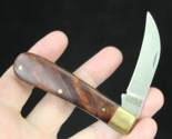 Dorworld pocket knife. Stainless steel. Beautiful wood handle material. Brass pins etc. Hawk bill like blade.