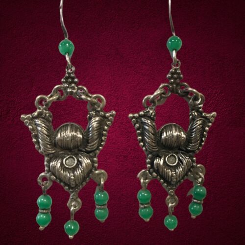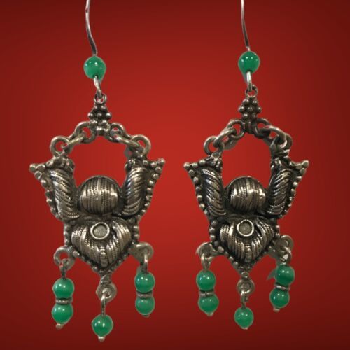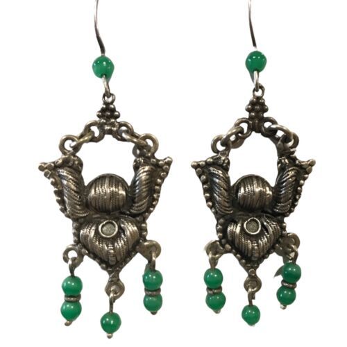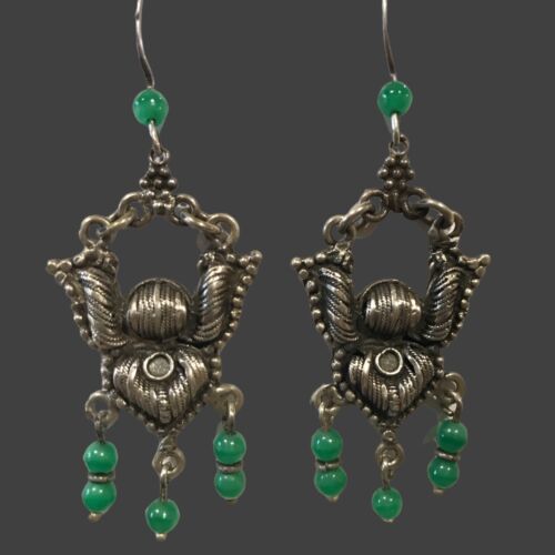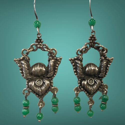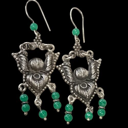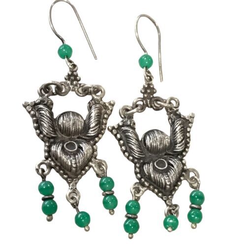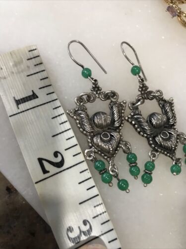 - vintage sterling silver Jade dangle earrings 14 Grams