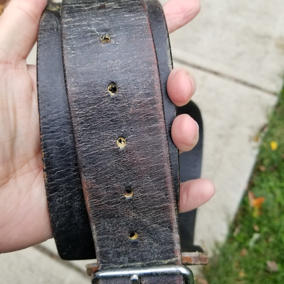 Great shape with no rips or tears. Light signs of age only. Buckle works as it should.