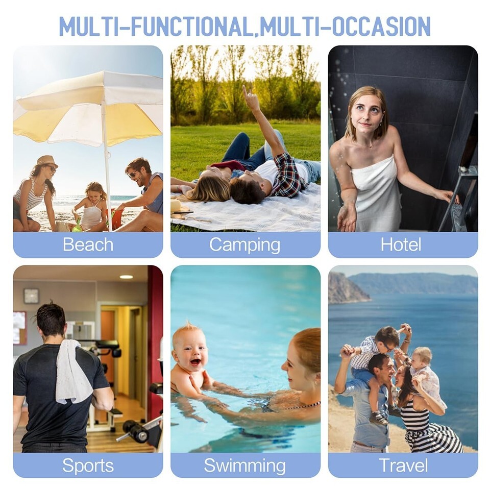 Versatile Multi-occasion These large compressed towels are the ultimate travel companion. Suitable for travel, camping, swimming, sports, outdoors. Perfect for use at the beach, hotel, also can used for office, school, hotel, home and more.